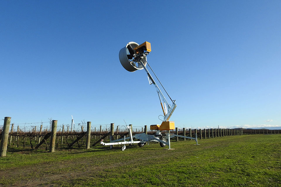 Diese Frostschutztechnik basiert auf Luftverwirbelung. Die vom Boden aufsteigende Wärme wird in die Obstanlage zurückgeführt. Das einzigartige Design dieses Gebläses leistet effizienten Frostschutz für alle Kulturen, auch wenn diese in Tälern oder an Hanglagen angebaut werden. Die Möglichkeit das Gebläse für diese Anwendungen anzuwinkeln und horizontal auszurichten, bietet eine aussergewöhnliche Vielseitigkeit und unterscheidet dieses Gebläse von allen anderen Windmaschinen.