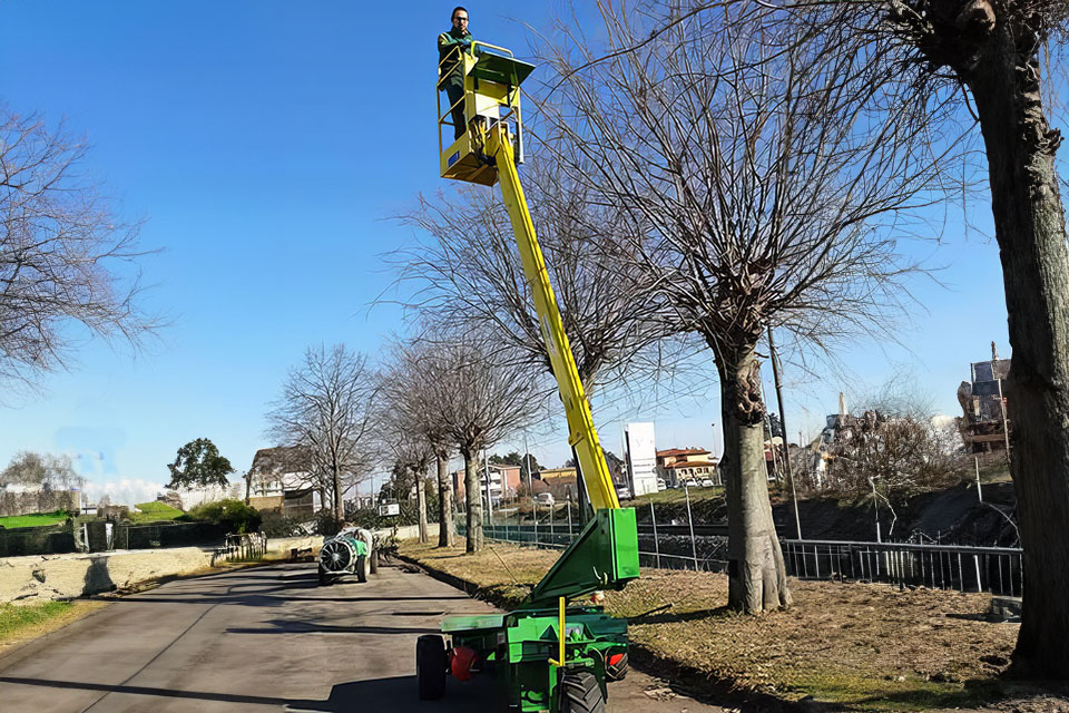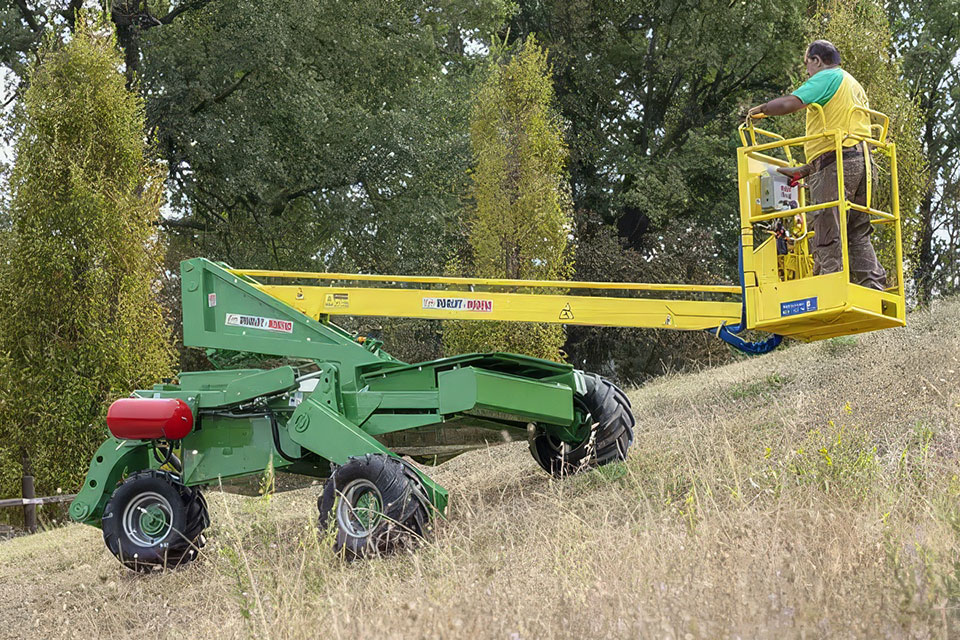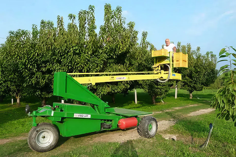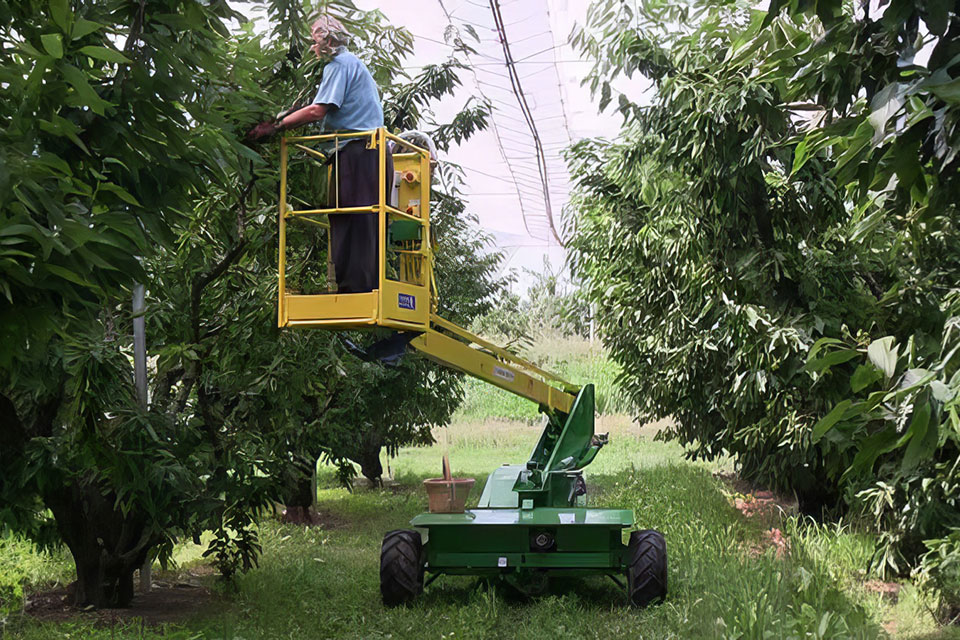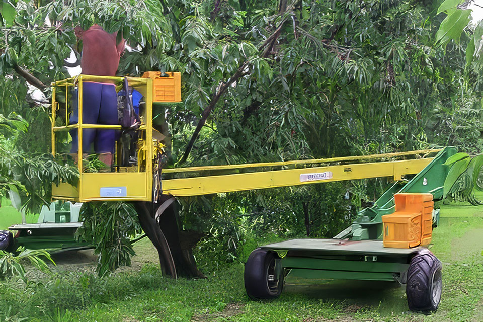 VI-BO SRL die selbstfahrenden Hebebühnen, welche für den Baumschnitt, Hagelnetzarbeiten, die Ernte und vieles mehr eingesetzt werden können.